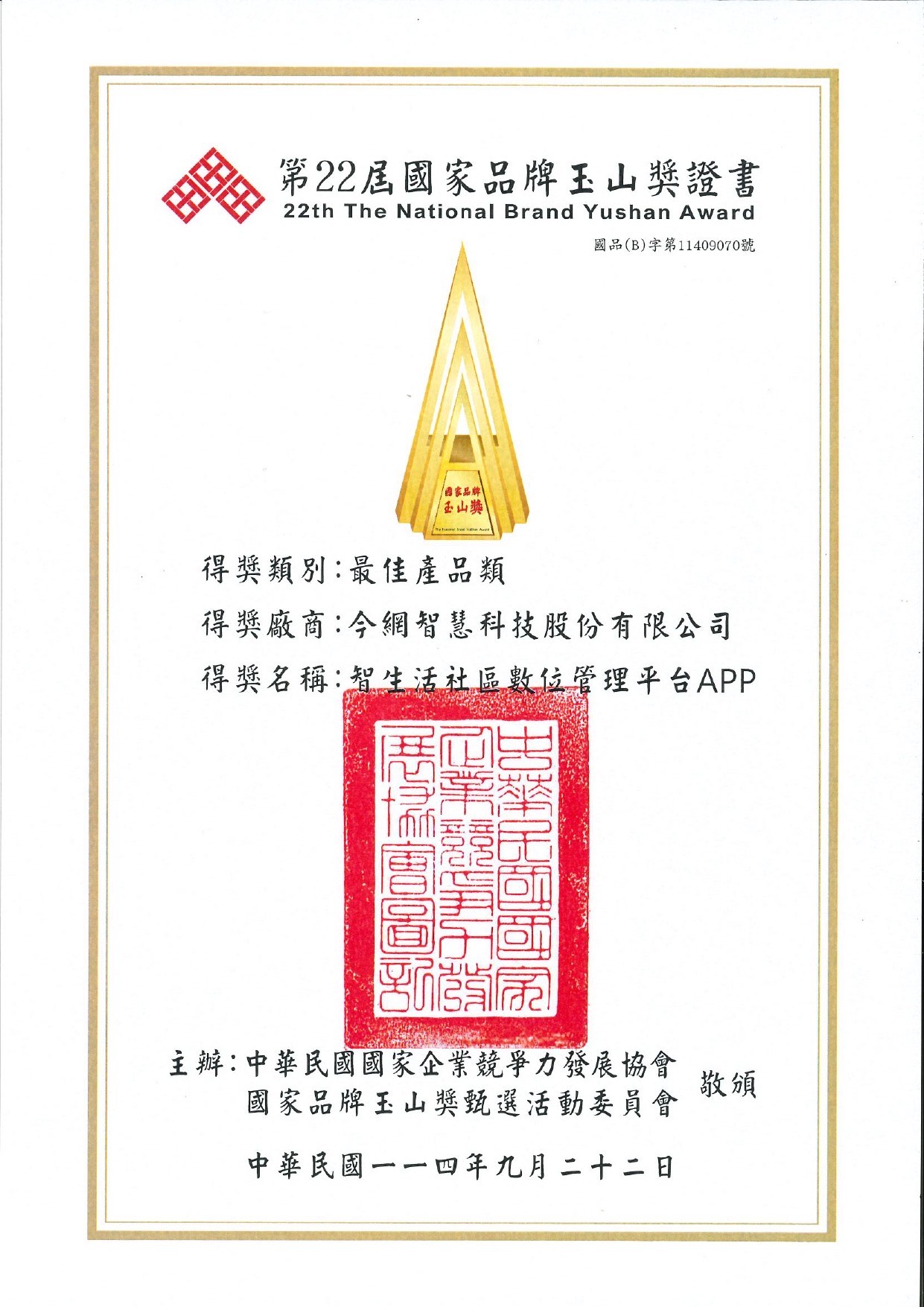 智生活很高興向大家宣布,憑藉卓越的創新研發實力與產品設計理念,智生活社區數位管理平台,榮獲第22屆玉山獎「最佳產品類」大獎。此一榮耀不僅彰顯智生活持續追求卓越的品牌精神,更再次肯定公司在產品功能、安全品質與市場價值上的卓著表現。