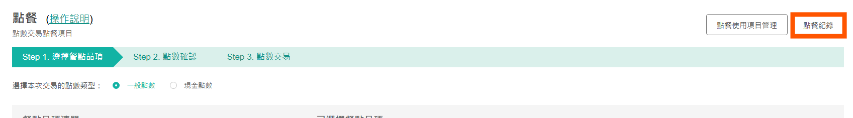 1. 點選「點餐」 → 選擇交易點數類型