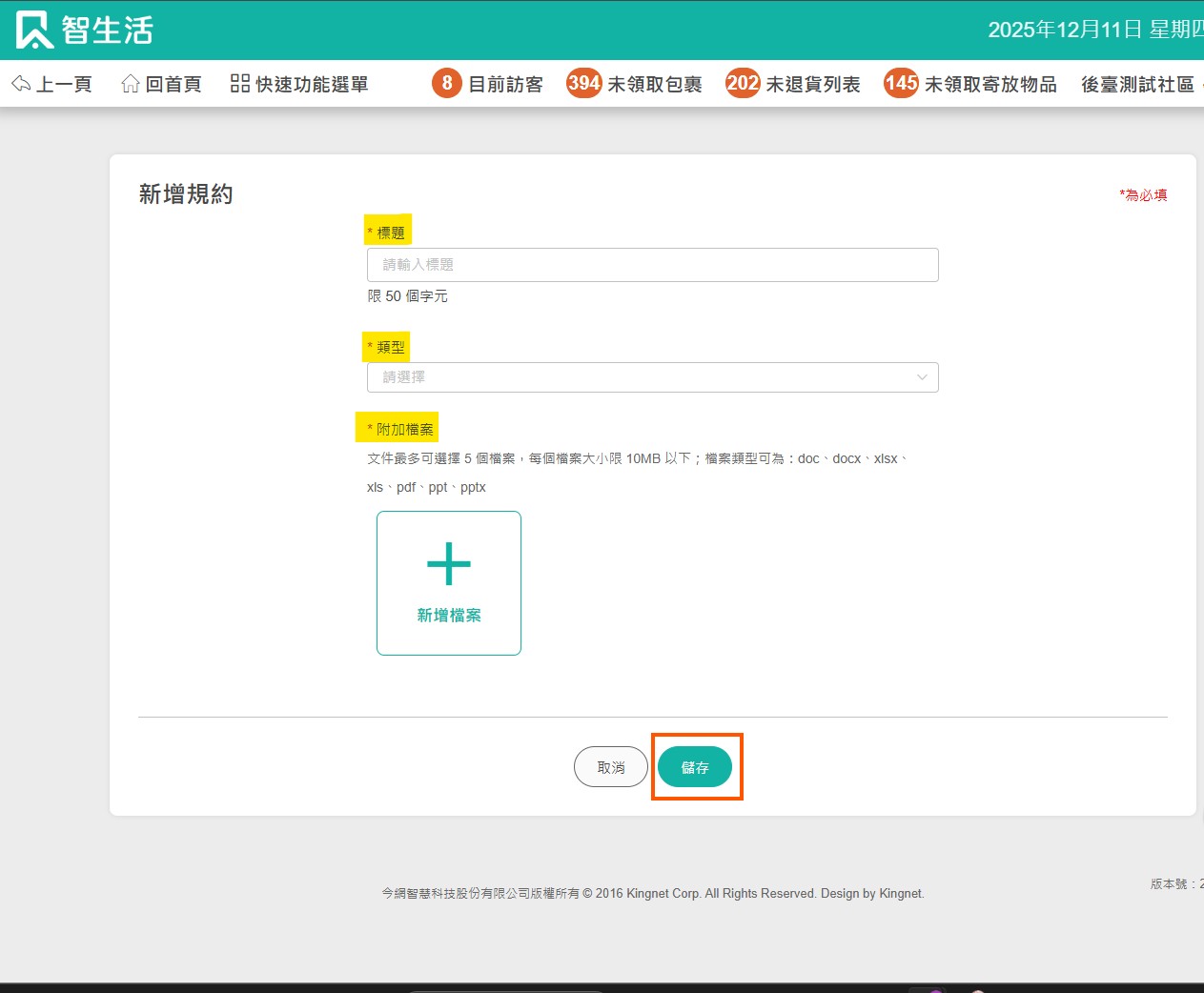 輸入相關資訊,將已制定完成之規約文件上傳,並點擊【儲存】即完成規約上傳。
