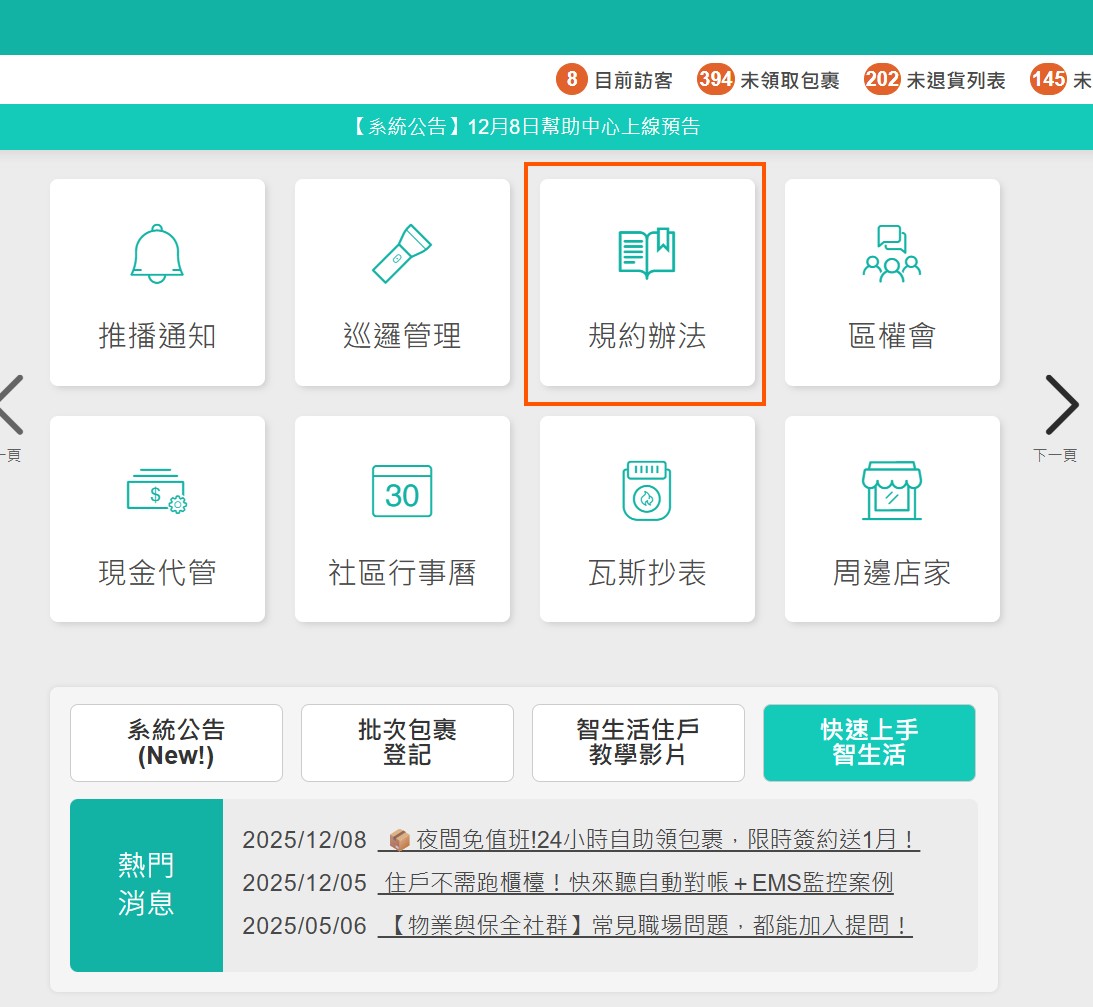 進入社區規約首頁,可以快速查看已經新增的社區規約。