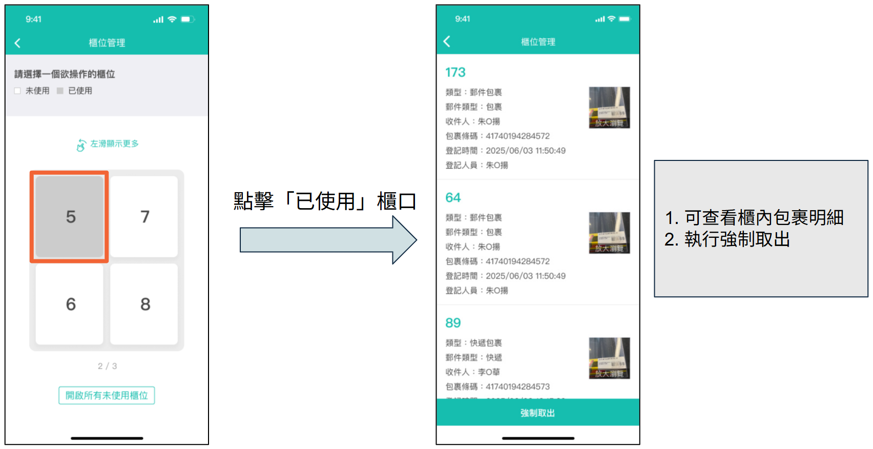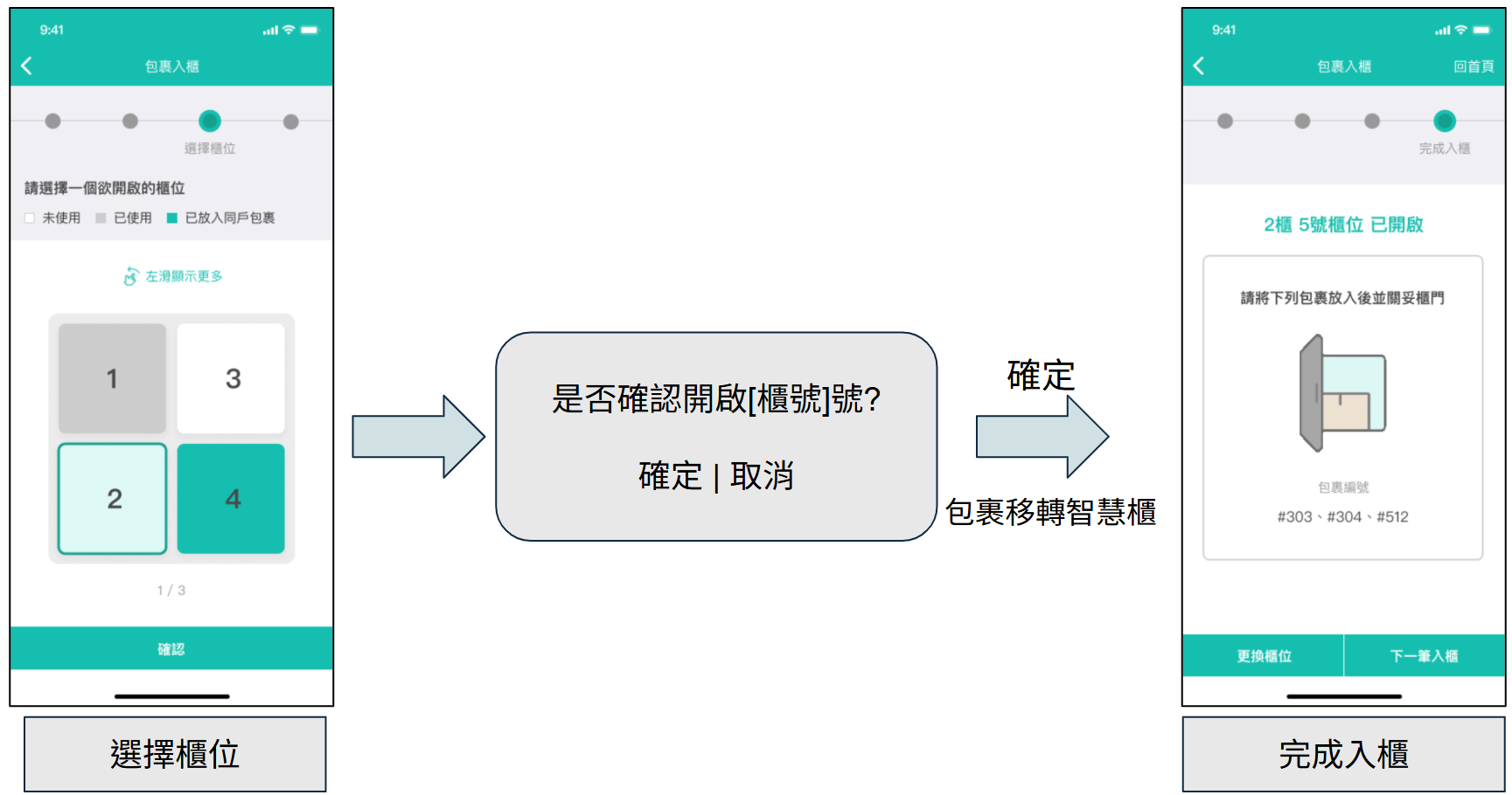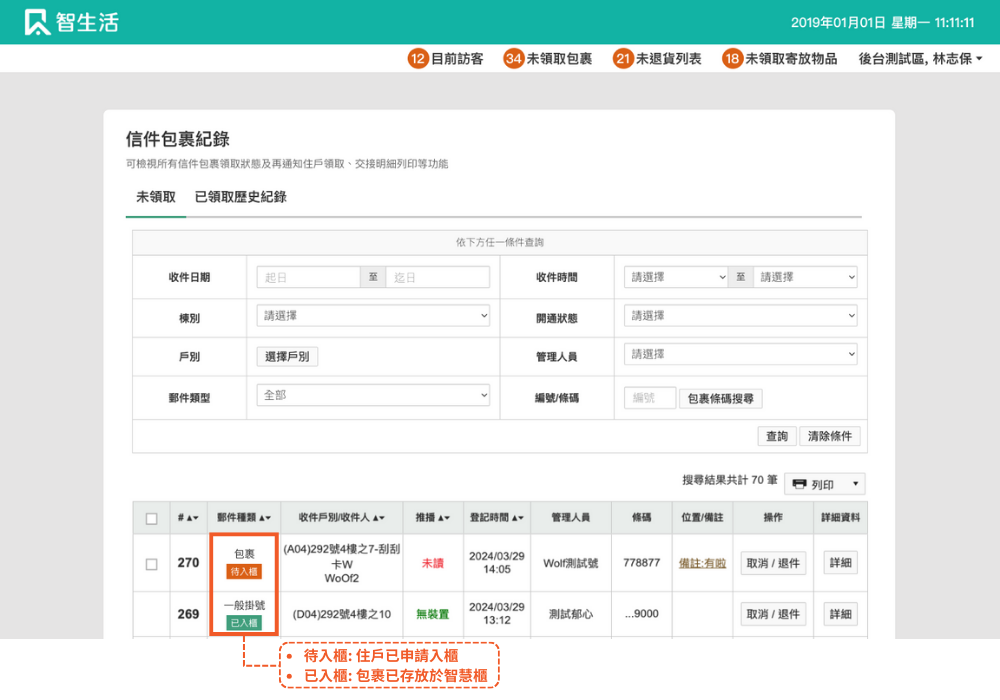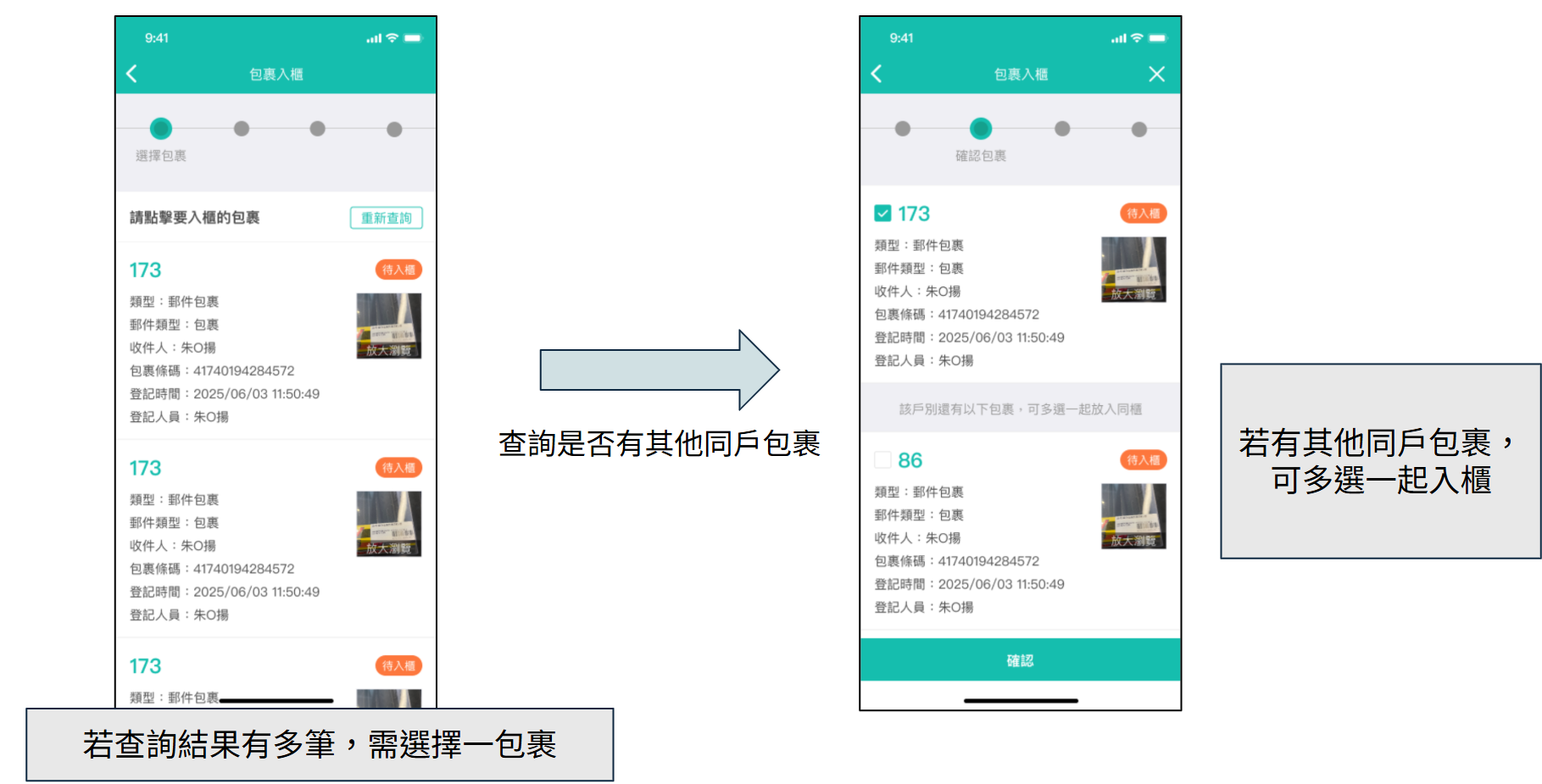 步驟3:「未領取」列表新增「待入櫃」、「已入櫃」標籤