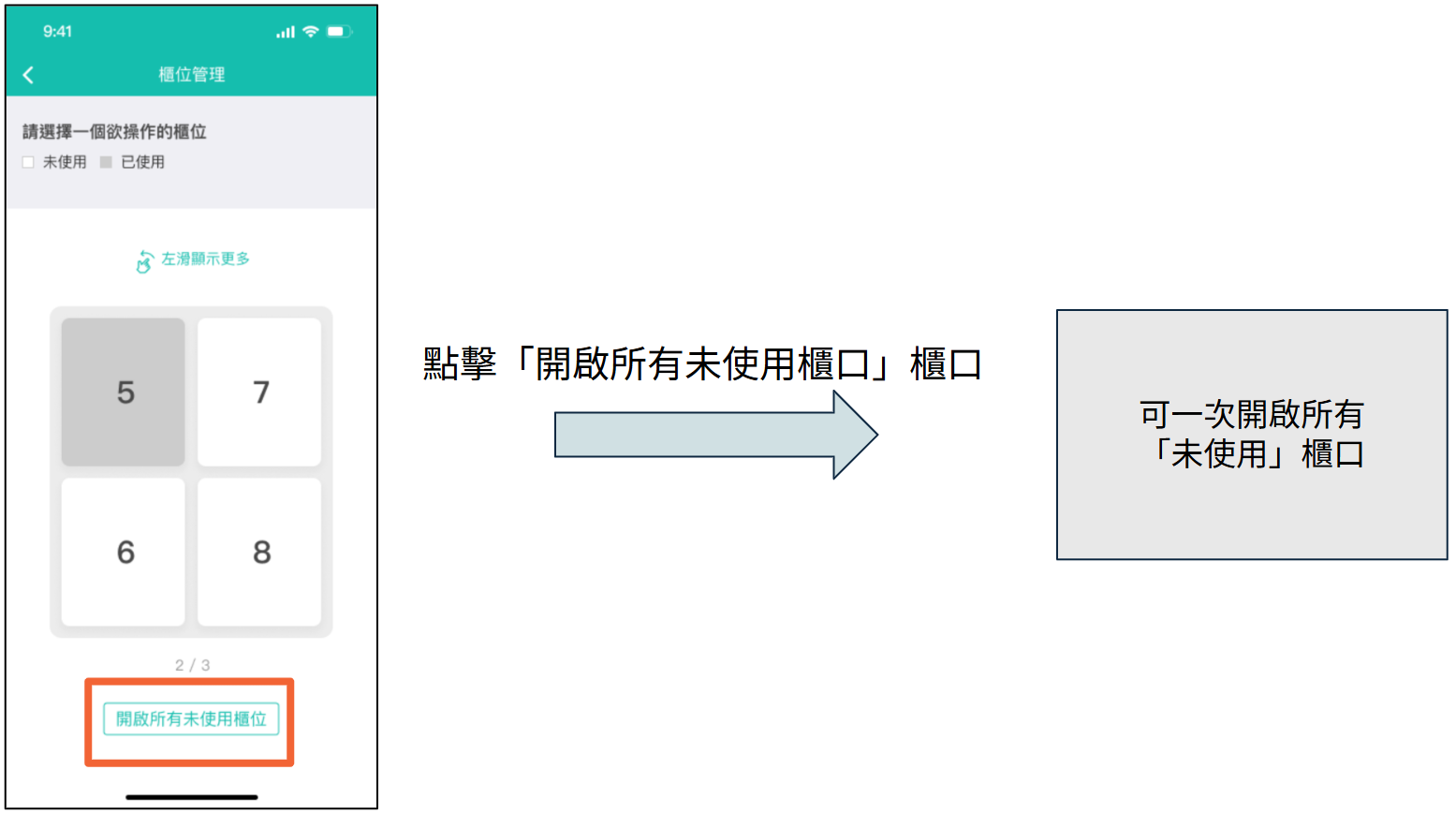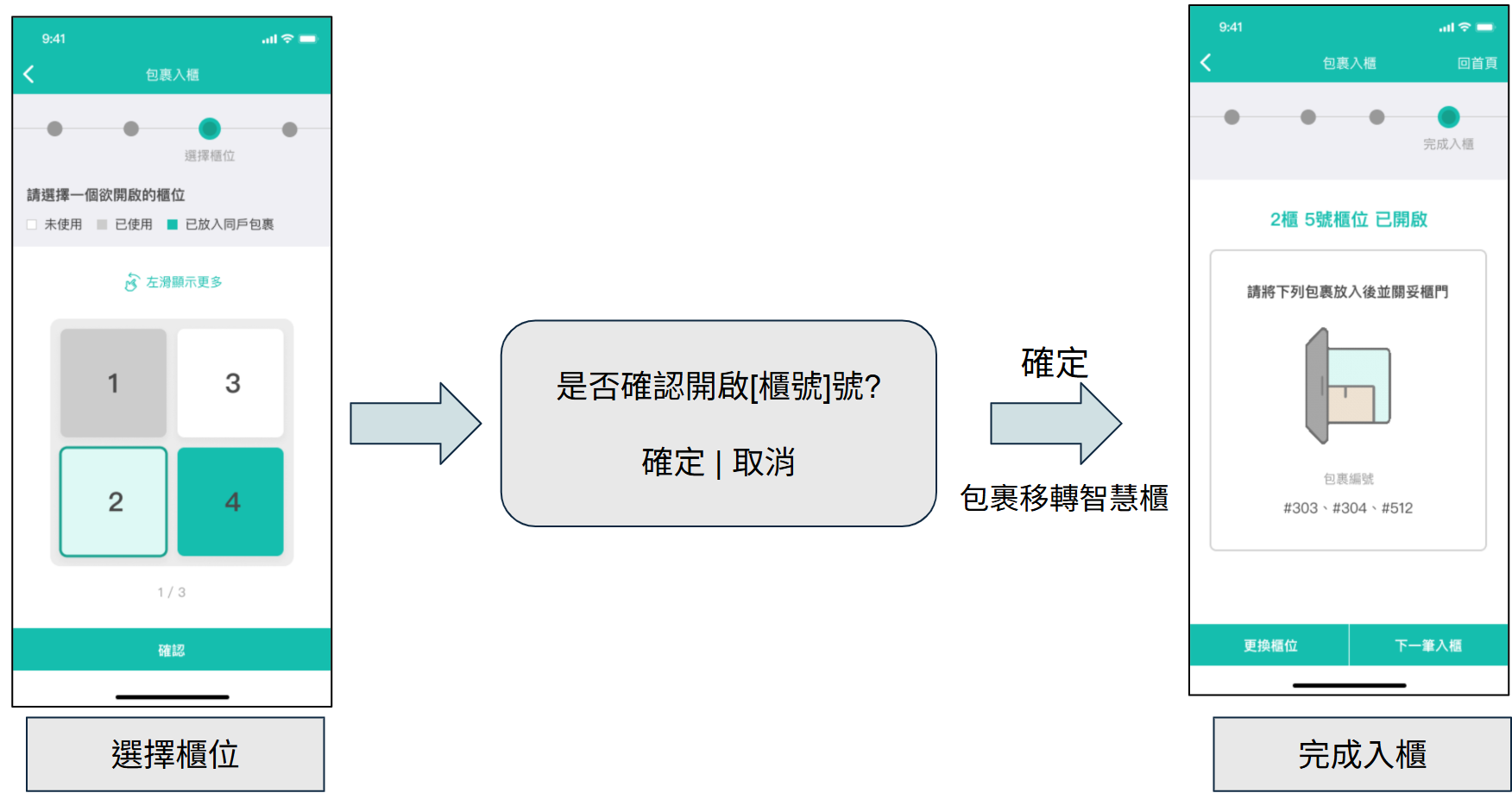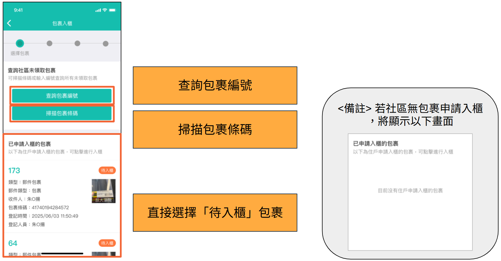 步驟3:「未領取」列表新增「待入櫃」、「已入櫃」標籤