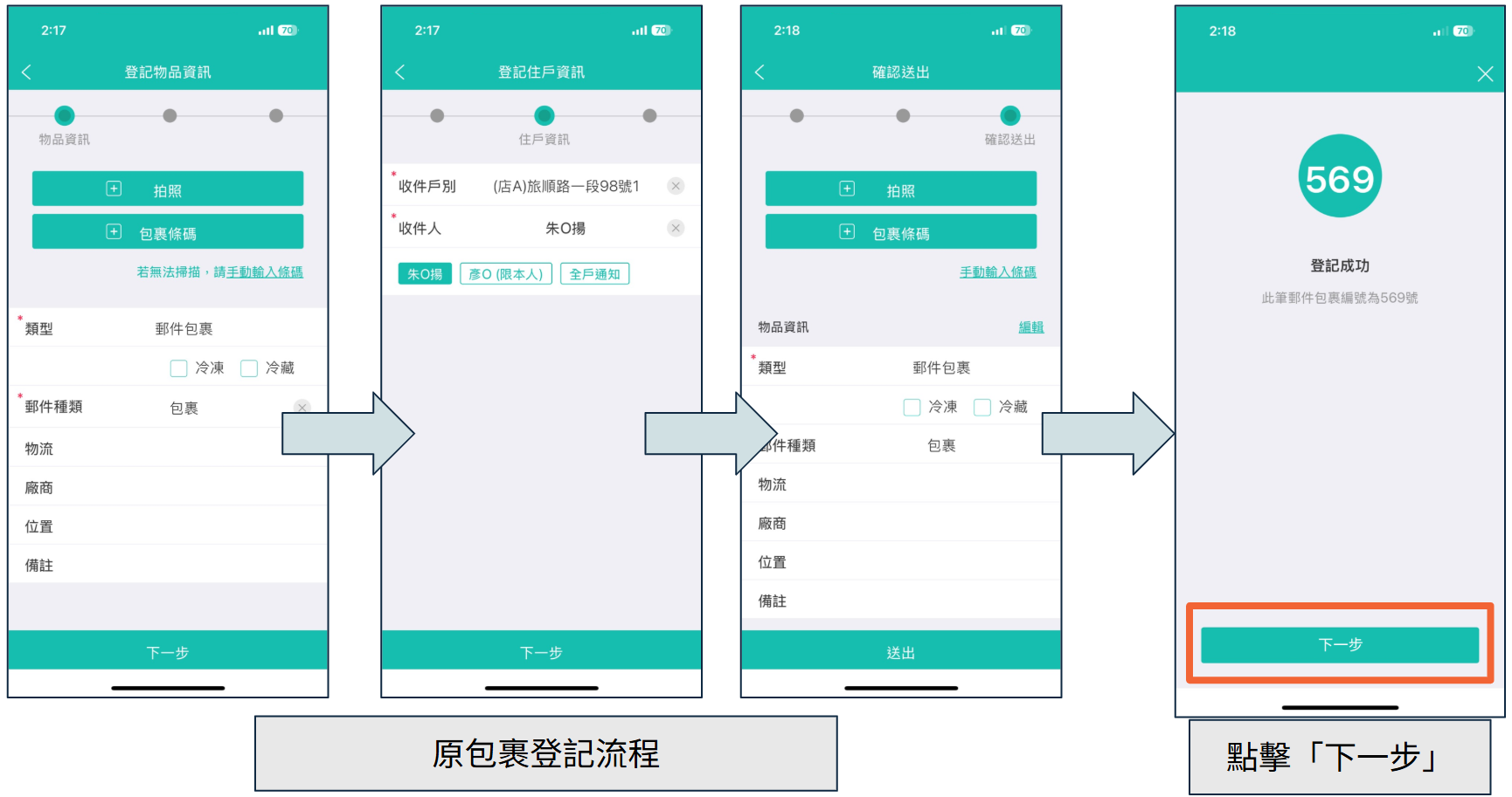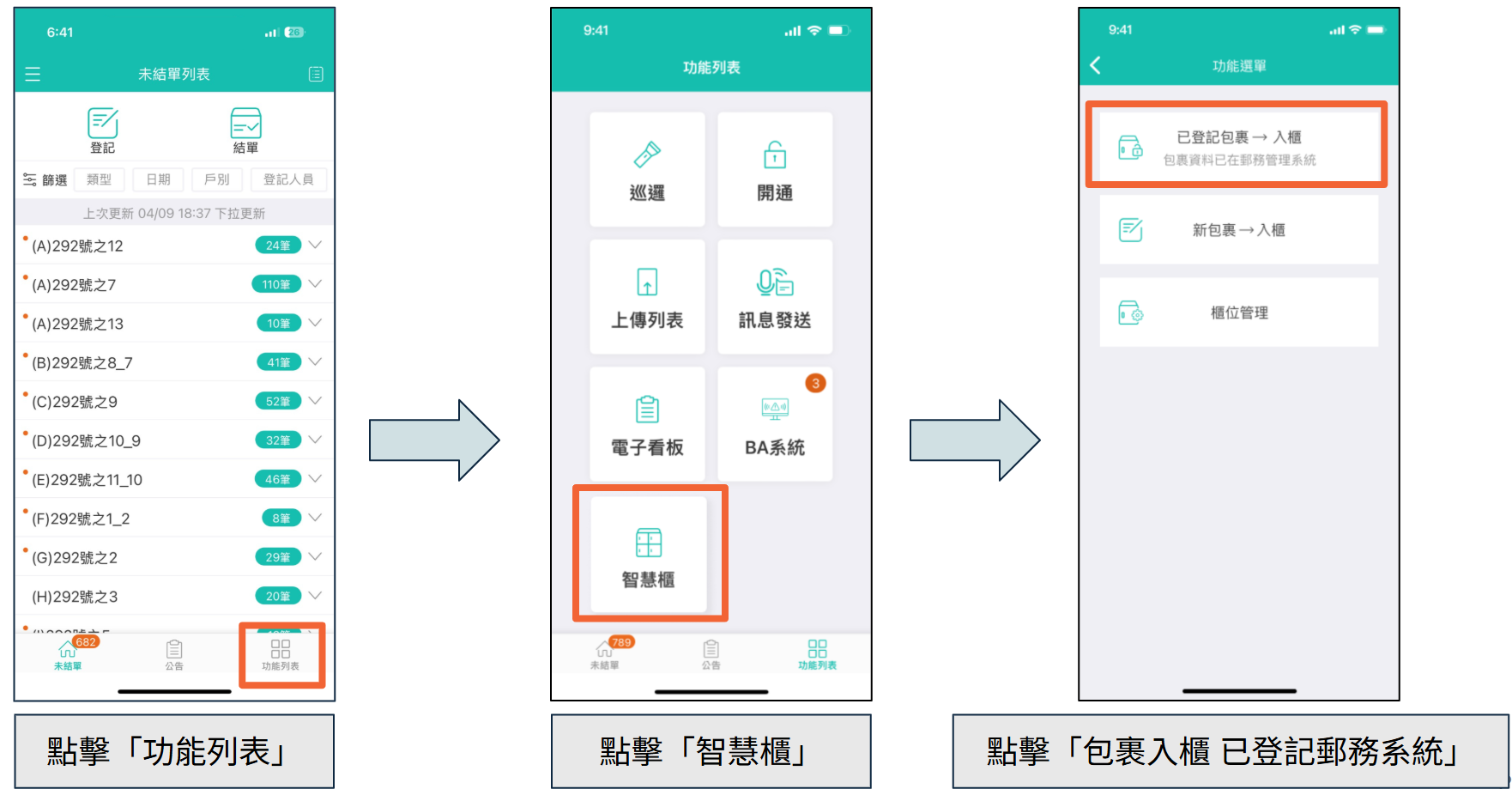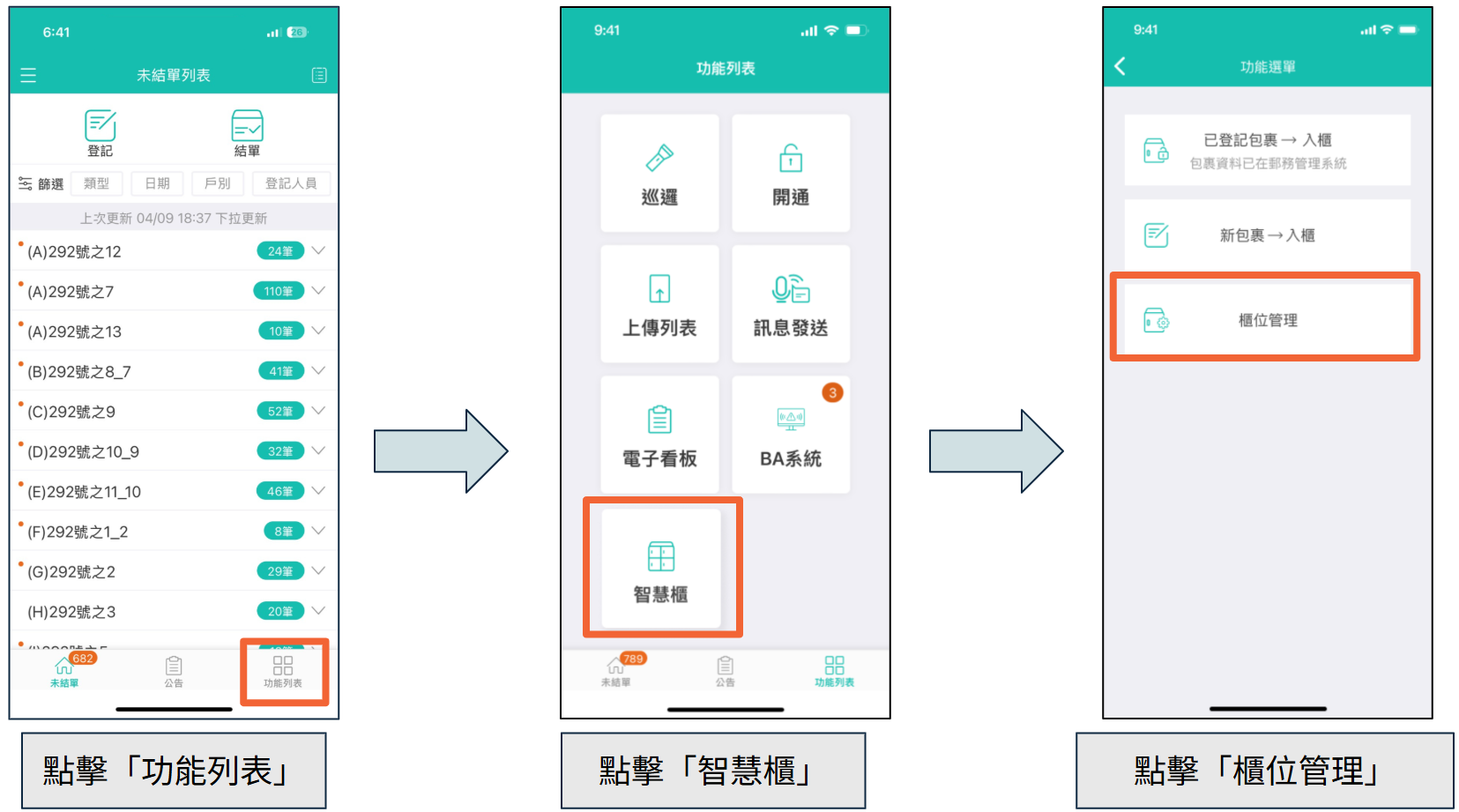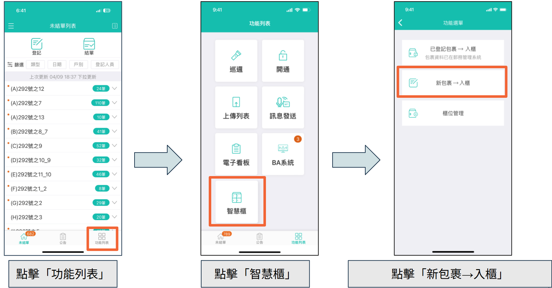 步驟3:「未領取」列表新增「待入櫃」、「已入櫃」標籤
