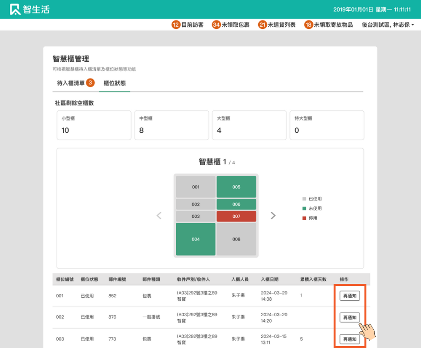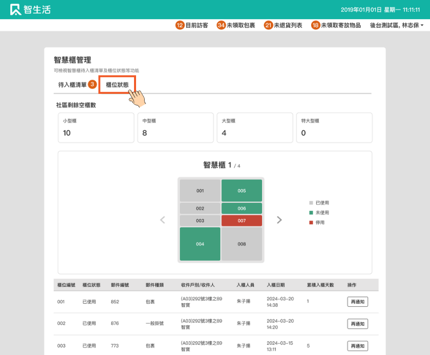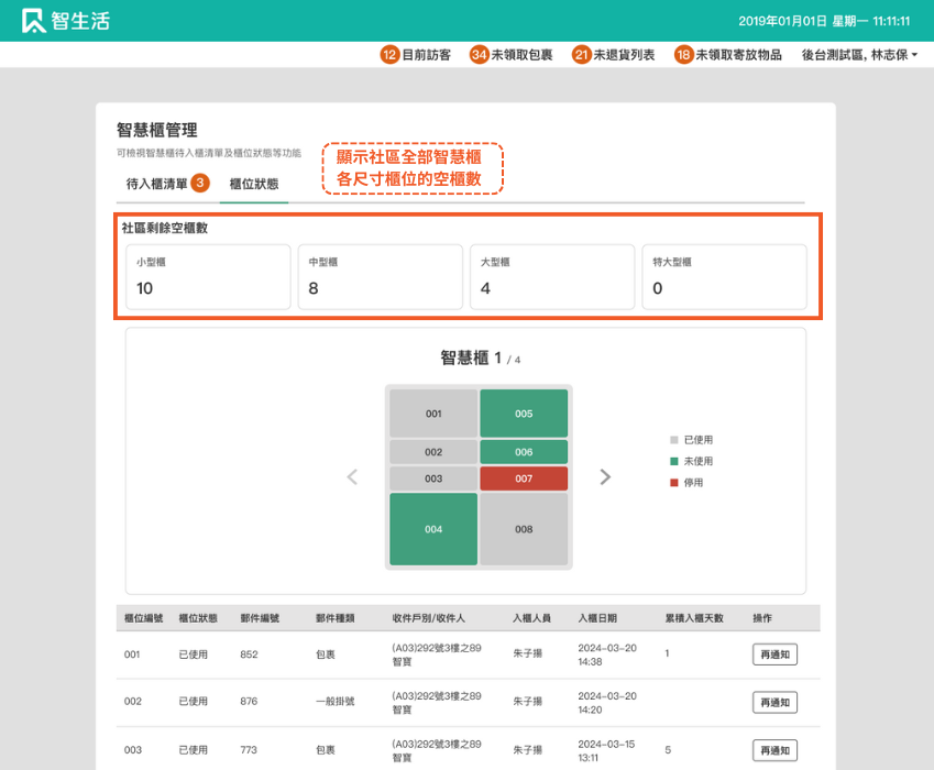 步驟2:於上方查看社區全部智慧櫃各尺寸的空櫃數量