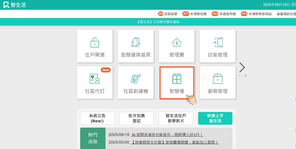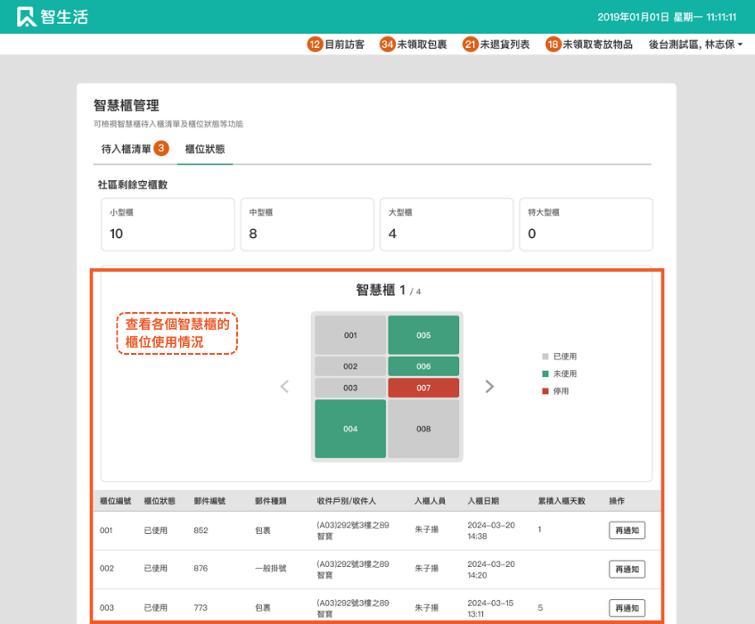 步驟3:於下方查看社區個別智慧櫃的使用狀況